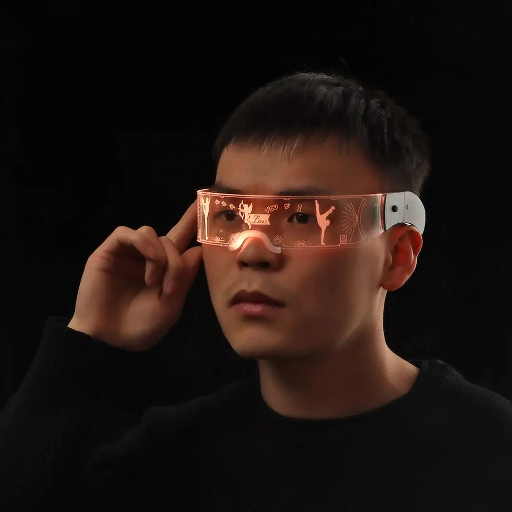 Futurista 7 cores led luminosa óculos cyberpunk eyeware cosplay viseira